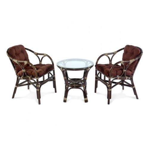 Один из самых удобных комплектов в гостиную или на террасу. Состоит из двух кресел и стола, подушки входят в комплект.